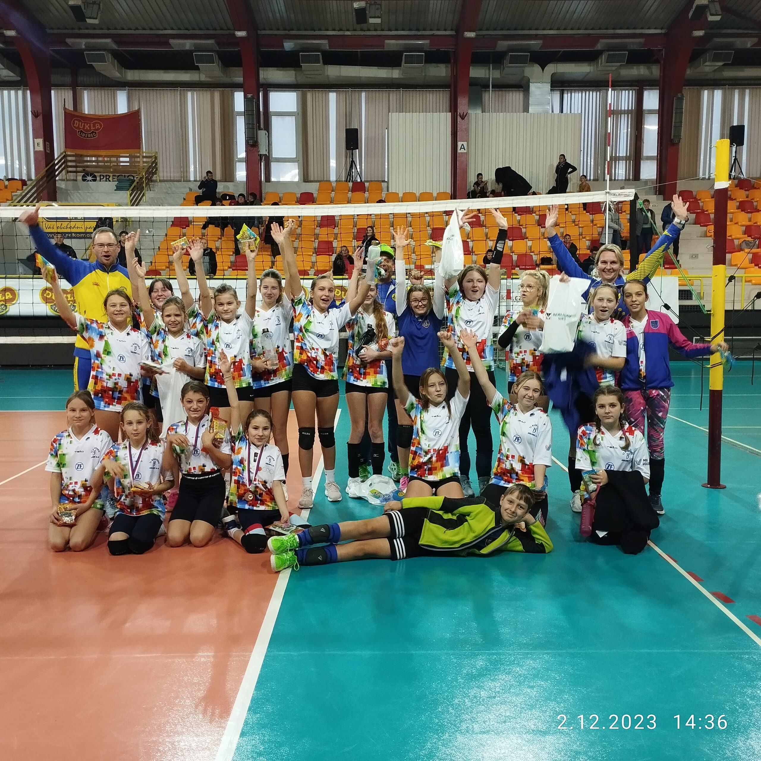 Dnes proběhlo další kolo barevného minivolejbalu, tentokrát pro kategorie červená a modrá v Liberci na Dukle. Účast byla 9 týmů červených a 12 týmů modrých z Jablonce, Liberce, Turnova a Mnichova Hradiště (asi trochu nasněžilo, tak Varnsdorf a Nový Bor nedorazily). V červených se holky vytáhly a udělaly radost nejen sobě , ale i nám trenérům. Jedna „bedna“ byla – 2. místo Maky, Viky a Bea – gratulujeme!!!! Jedna „bramborová“ – 4.místo – škoda, lepší by bylo na „bedně“, a 9.místo. Modří , tak tam to bylo horší a obsazení zadních pozic tabulky není moc na pochvalu 🙁 Trochu tam hrály nervy, trochu zbrklost a nevedlo se podání. Bude potřeba také zapracovat na pohybu v poli = nečekat, že mě míč trefí, ale dojít/lépe doběhnout si pro něj!