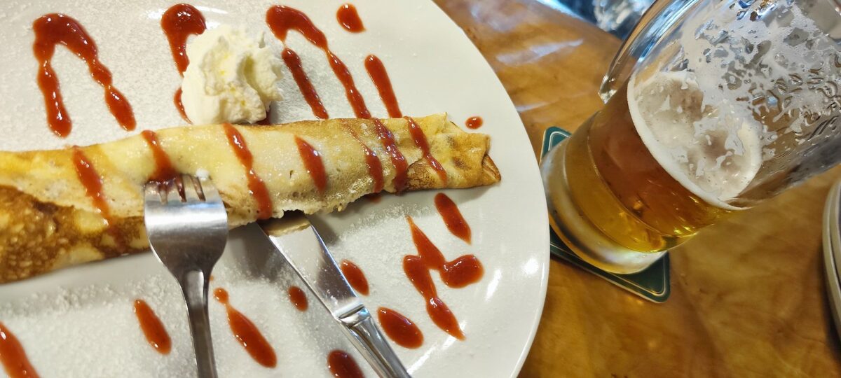 Závěrečná palačinka u Jardy na chatě Proseč, byla ale správnou tečkou za slunečnou nedělí, celou vypráskaně strávenou v tělocvičně.