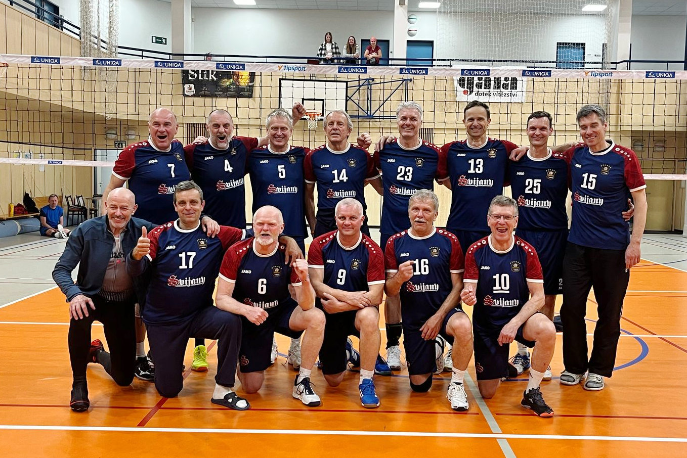Ve svijanském dresu nastoupil Endi (kdysi na útoku 356) na účko, Jarda Škach na pink a nesmrtelný Pepin Ziťák na prdu (nejlepší smečař).